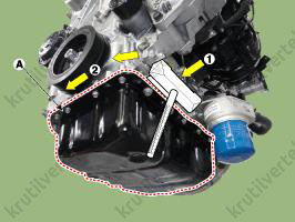 - Установите масляный поддон. Равномерно затяните болты в несколько подходов.