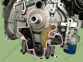 5. Снимите направляющую (D) цепи уравновешивающего вала.