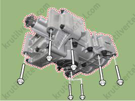 - Во избежание утечек масла нанесите герметик на внутреннюю резьбу отверстий для болтов.