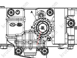 - Убедитесь, что метка синхронизации (A) звездочки визуально совмещена с центром прилегающей литой прорези синхронизации (B).