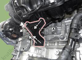 2. Отверните болты крепления и снимите опору впускного коллектора (А).