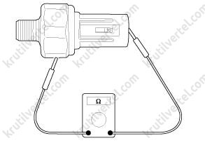 1. Проверьте электропроводность между клеммой и корпусом с помощью омметра. Если электропроводность отсутствует, замените датчик давления масла.