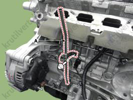 1. Снимите направляющую измерительного щупа уровня масла (А).