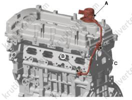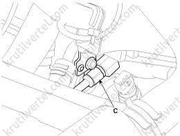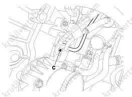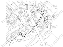 - Отверните болт крепления кронштейна (С) топливопровода высокого давления и затем снимите топливопровод.