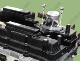 По очереди отверните два болта (с шагом 0,5 оборота). При полном выкручивании одного из болтов (при условии, что второй болт не вывернут) поверхность корпуса головки блока цилиндров может быть повреждена вследствие напряжения пружины насоса.