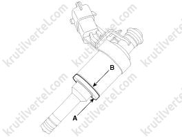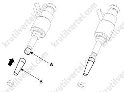 - При установке резиновой шайбы ее следует развернуть частью со стальной пластиной (A) в сторону установочной части цилиндра, чтобы резиновая пластина (B) оказалась обращенной в сторону корпуса форсунки.