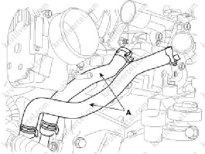 5. Отсоединить верхний (А) и нижний (В) шланги радиатора.
