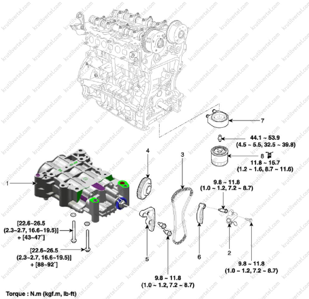 - Компоненты системы смазки, дизельные двигатели (D4HA и D4HB)
