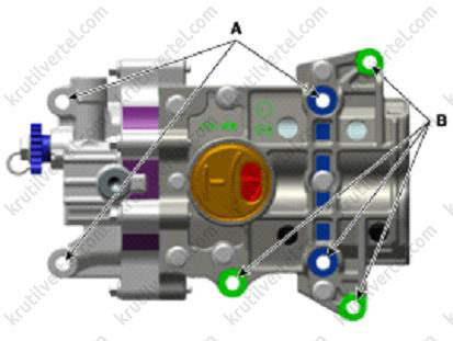3. Отвернуть нижние болты крепления компрессора кондиционера (А).