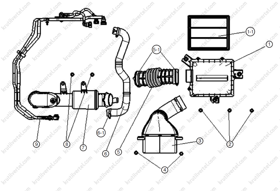 - Корпус повітряного фільтра у зборі 1-1. Фільтруючий елемент