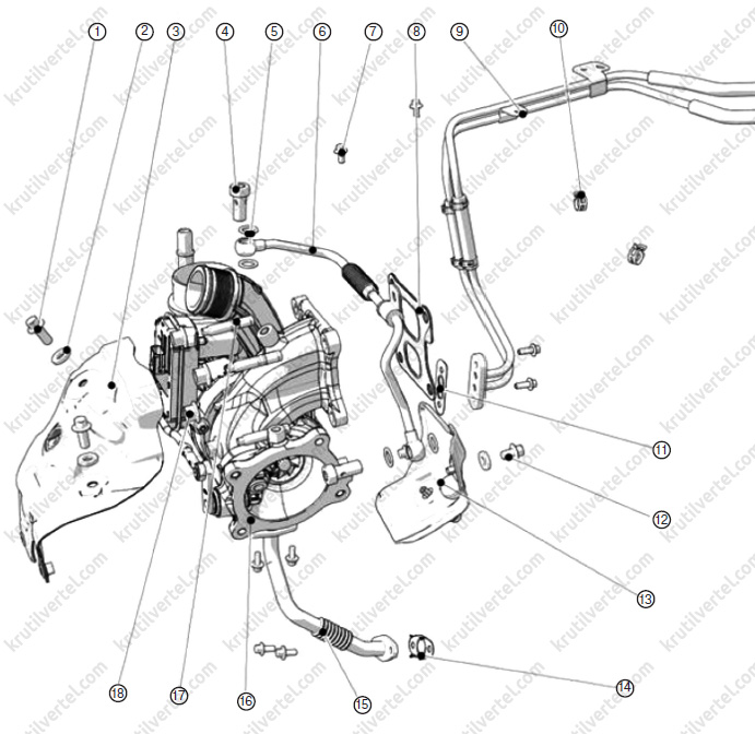 - На наведеному нижче малюнку турбокомпресор зображений схематично, тому може відрізнятися від реального.