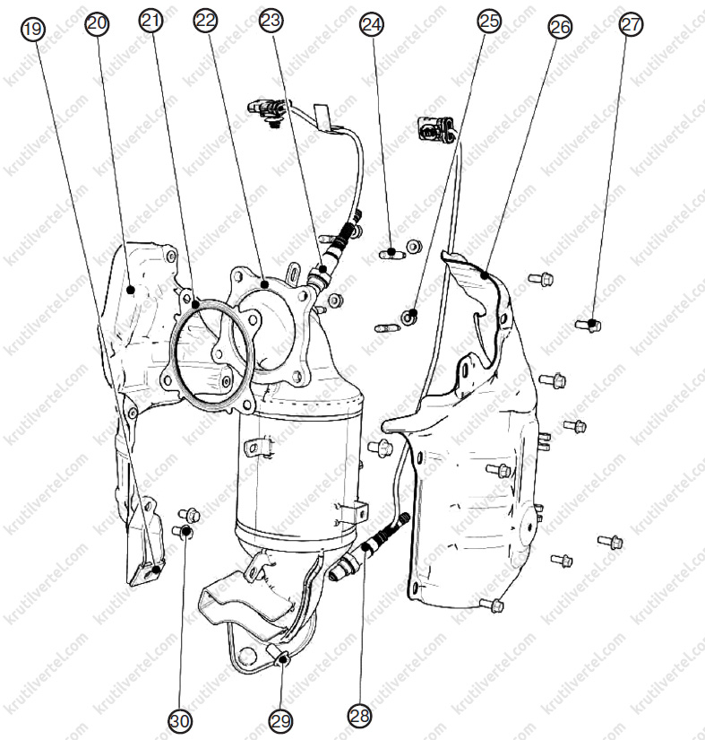 - Гайка кріплення каталітичного нейтралізатора та турбокомпресора