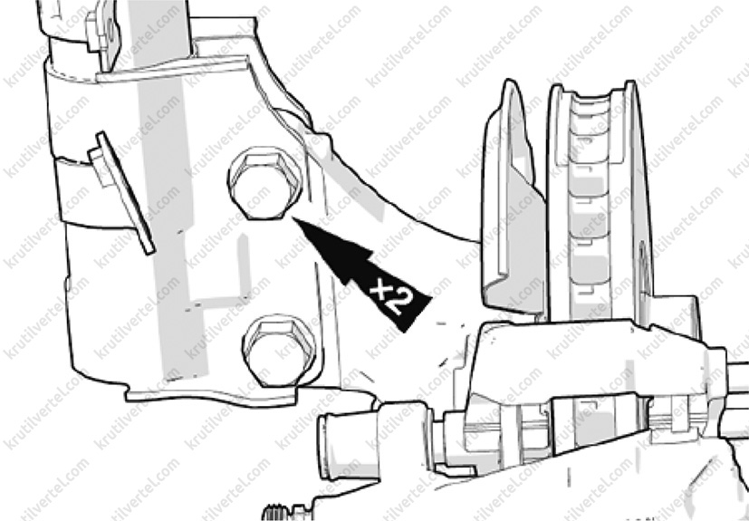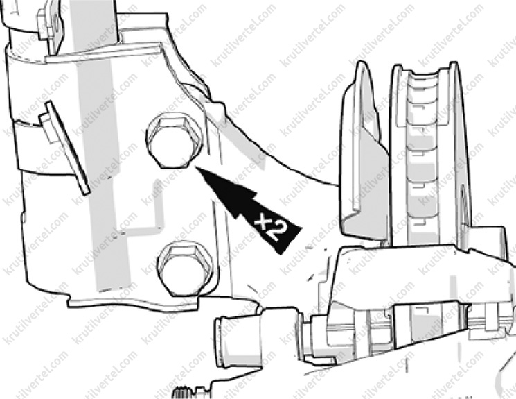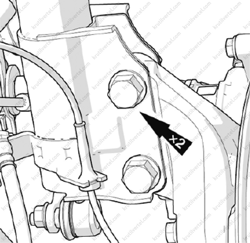 4. Викрутити болти кріплення підрамника задньої підвіски до кузова автомобіля у зборі. Момент затягування при встановленні: 120 – 140 Н∙м (передні), 200 – 220 Н∙м (задні).
