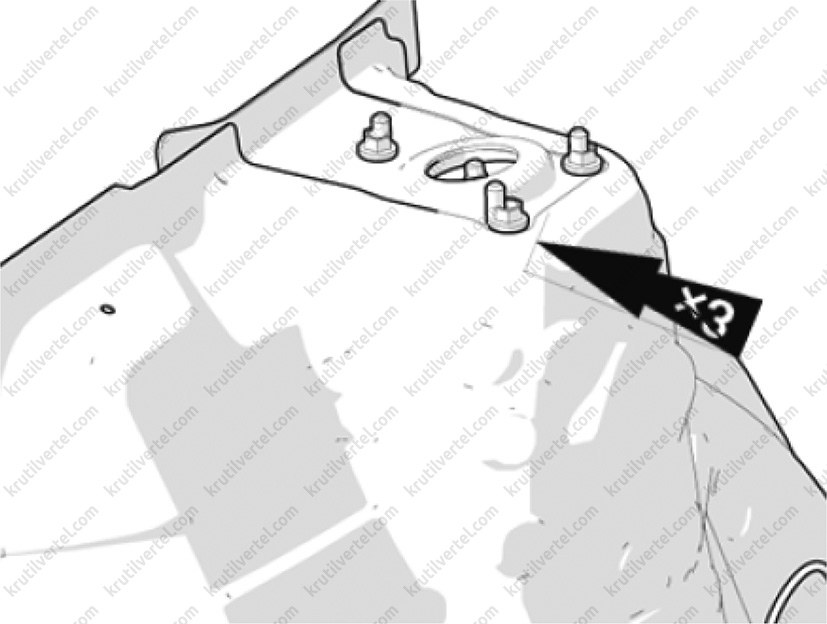 7. Відвернути три гайки кріплення амортизаторної стійки задньої підвіски до склянки кузова автомобіля. Момент затягування при встановленні: 85 – 90 Н∙м.