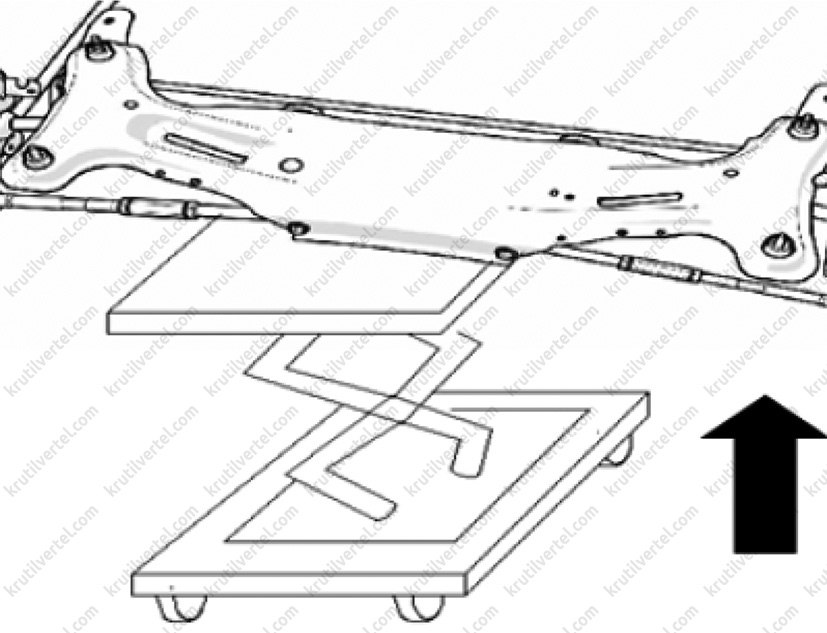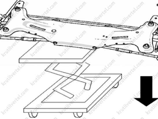 6. Опустити трохи підрамник задньої підвіски в зборі разом із гідравлічним домкратом.