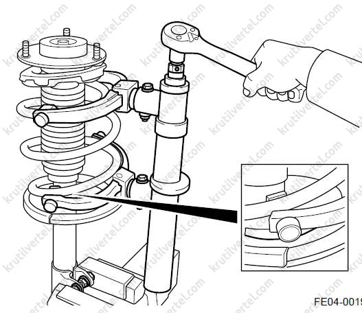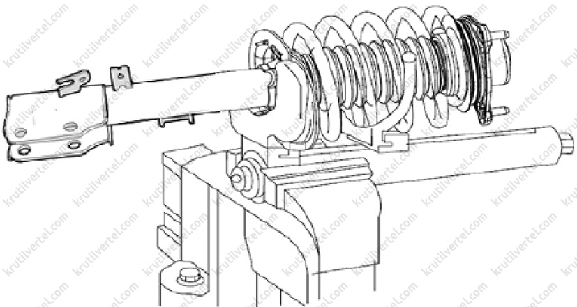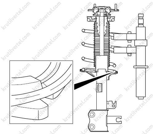 1. Використовуючи спеціальний пристрій, стиснути пружину амортизаторної стійки, як показано на малюнку нижче.