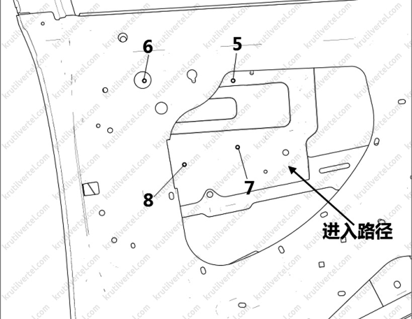 1. Зняти гофрований ущільнювач джгута електропроводки передніх дверей, як показано на зображенні нижче.