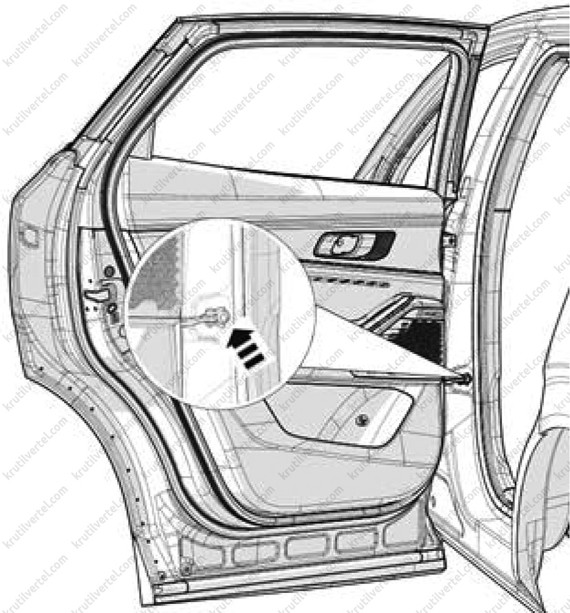 1. Зняти панель облицювання задніх дверей у зборі (докладніше, див. відповідний розділ у цьому розділі).