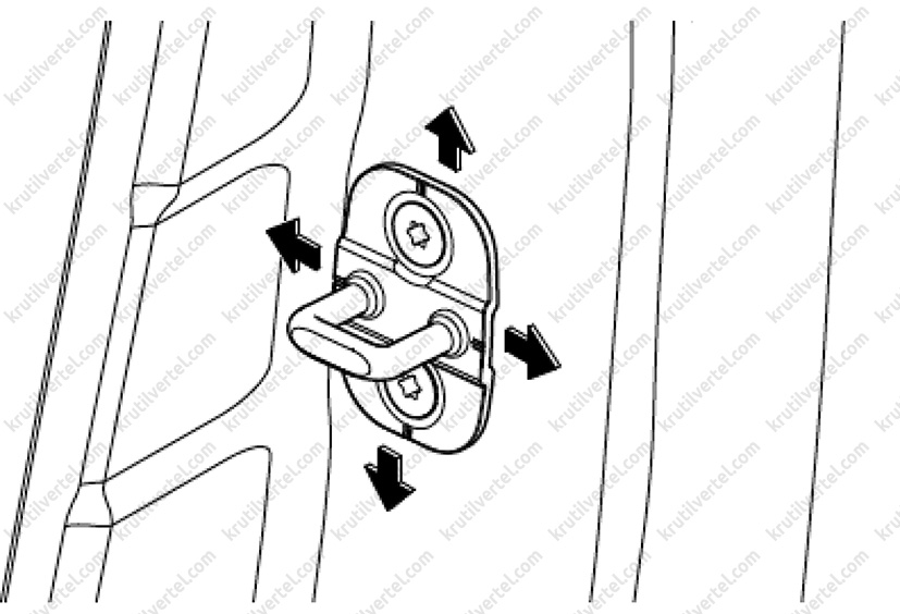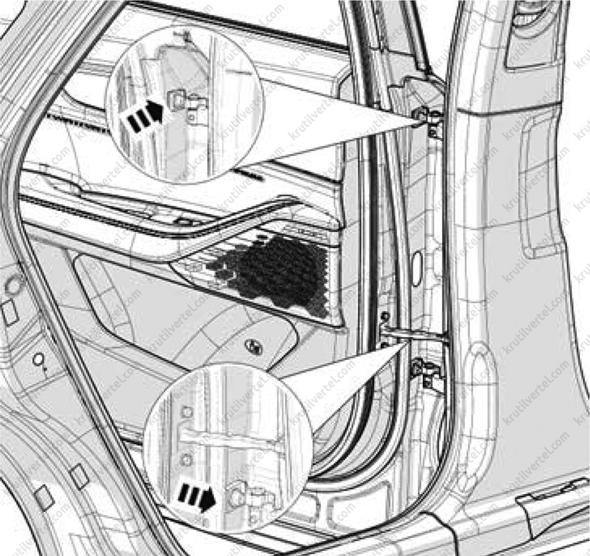 5. Після регулювання затягнути 4 шарнірні болти на двері автомобіля.