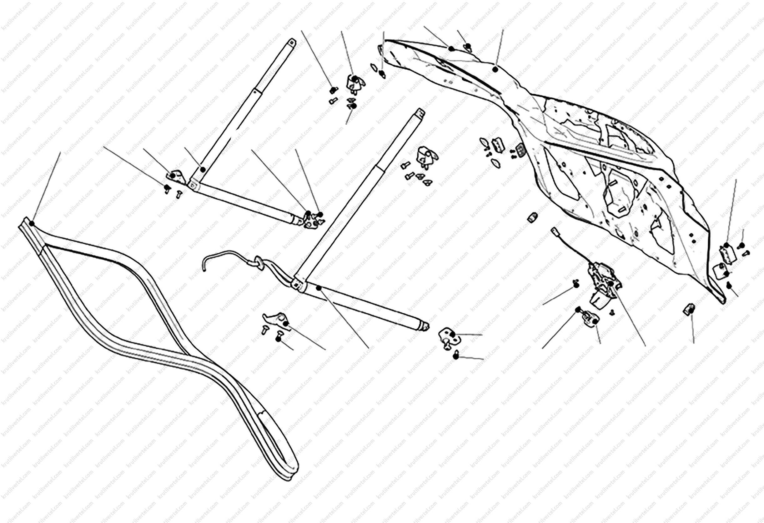 1. Викрутити болти кріплення навісів дверей багажного відділення (з боку дверей).