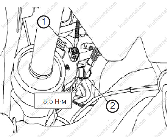 1. Від'єднати негативну клему від акумуляторної батареї (докладніше, див. розділ у розділі Електроустаткування двигуна).