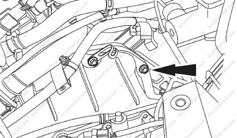 - Вийняти верхній та нижній болти кріплення стартера до блоку циліндрів, як показано на зображенні нижче.