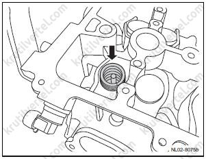 - Перед встановленням пружини клапана перевірити, чи правильно встановлена нижня тарілка пружини клапана.