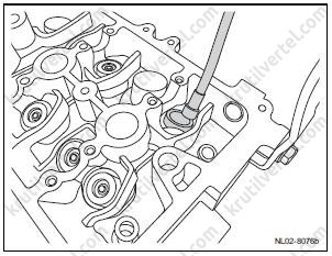 - Нанести свіжу моторну оливу на поверхню кулачків розподільчих валів. Нанести достатню кількість свіжої моторної оливи на отвір для змащення підшипників розподільчого валу.