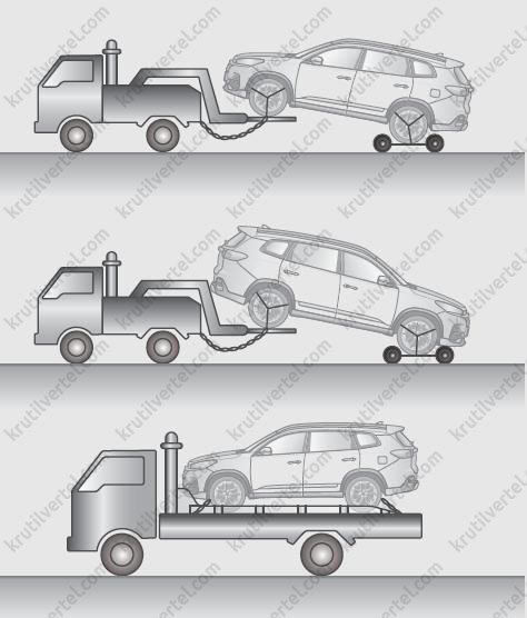 - Буксирування з вивішуванням передніх коліс (для передньопривідних автомобілів).