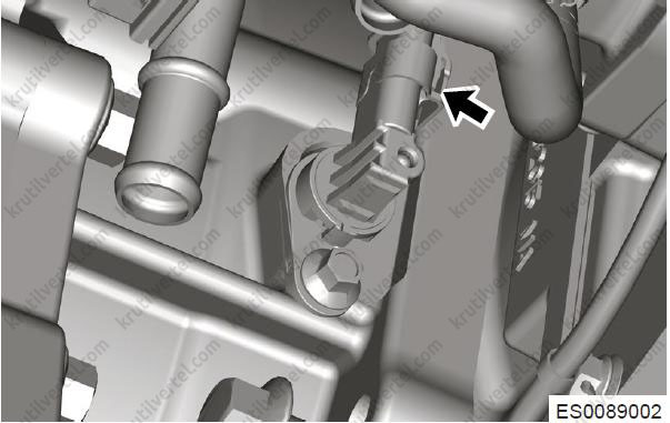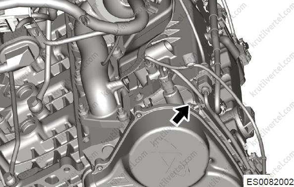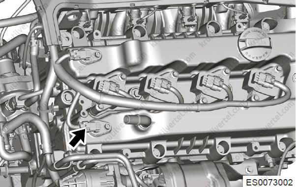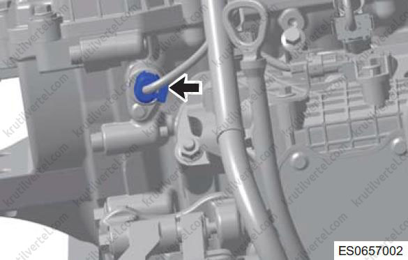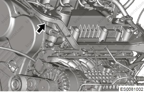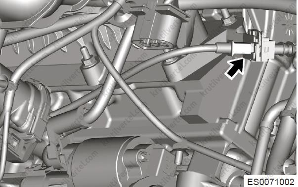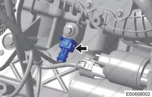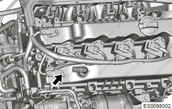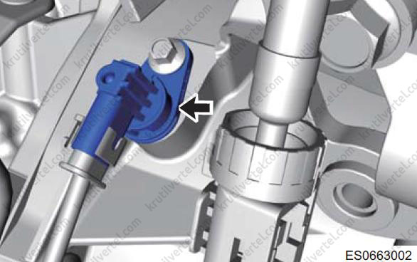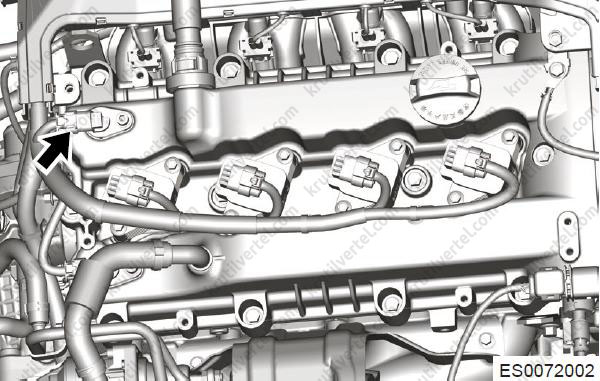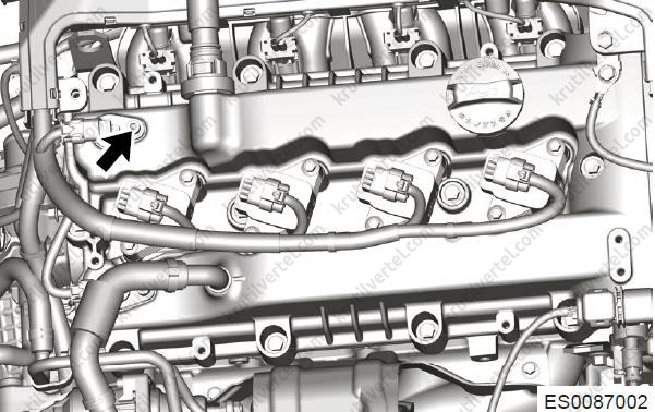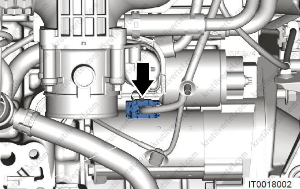 - Від'єднайте роз'єм датчика положення колінчастого валу (стрілка).