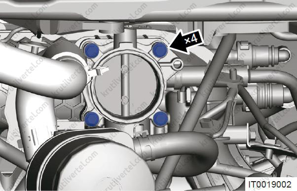- Відкрутіть чотири кріпильні болти (стрілки) і зніміть дросельну заслінку з електроприводом.