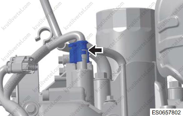 1. Від'єднайте роз'єм датчика тиску/температури на вході (стрілка).