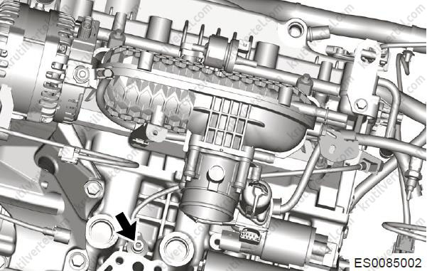 - Потім відверніть кріпильний болт (стрілка) датчика положення колінчастого валу.