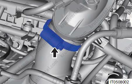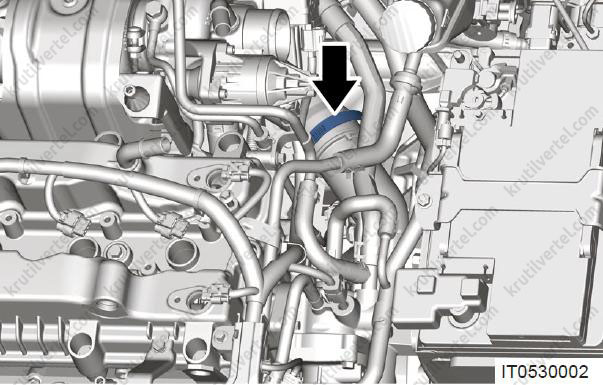 - При установці не перекручуйте і не переплітайте трубку охолоджуючої рідини, що підводить і відводить, і не міняйте їх місцями. Переконайтеся, що еластичний хомут встановлений на колишнє місце за допомогою щипців для хомутів.