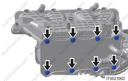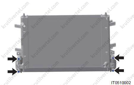 - Відкрутіть чотири кріпильні болти низькотемпературного радіатора.