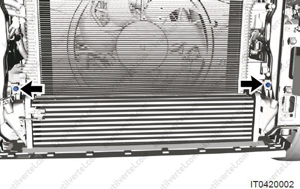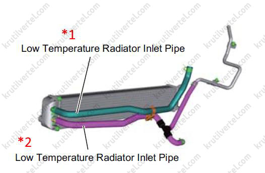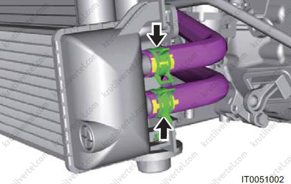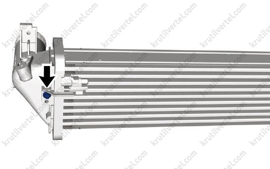 - Перед зняттям низькотемпературного радіатора необхідно злити охолоджувальну рідину з інтеркулера.