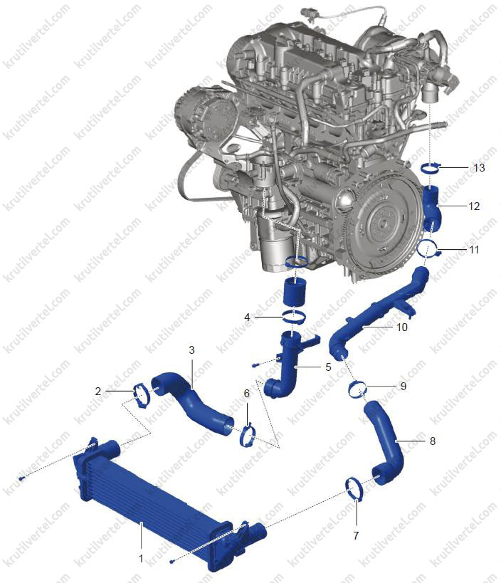 - Зніміть впускний патрубок інтеркулера I у зборі.