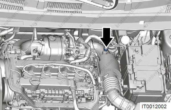 - Від'єднайте впускний патрубок вентиляції картера (стрілка).