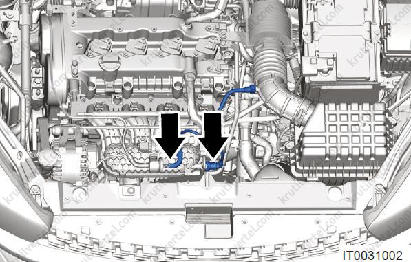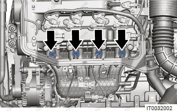 - Від'єднайте чотири роз'єми (стрілки) від паливних форсунок.
