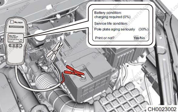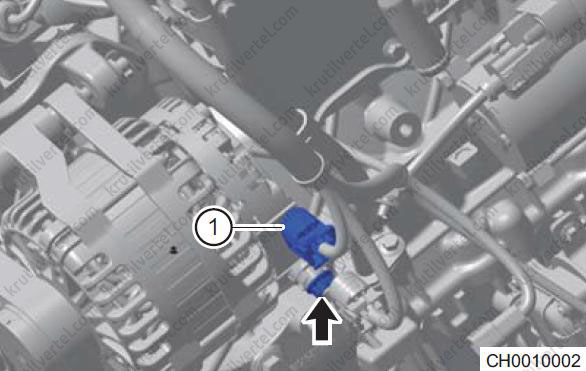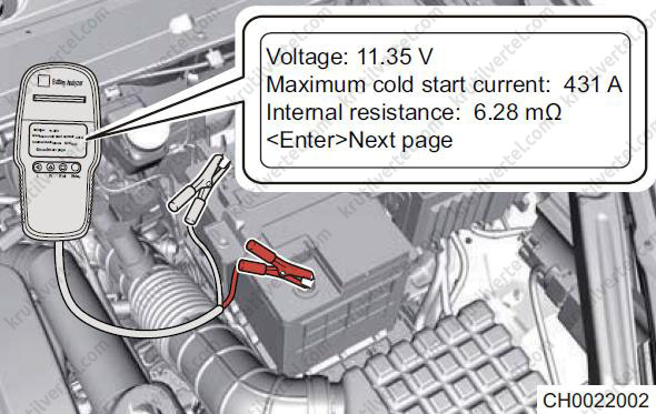 | Виміряйте напругу акумулятора за допомогою мультиметра. | Перевірте, чи не розряджена акумуляторна батарея (більше 12 В). Якщо вона розряджена, від'єднайте роз'єм джгута проводів генератора і знову виміряйте напругу акумуляторної батареї (понад 12 В). Якщо вона розряджена, зарядіть акумулятор. |