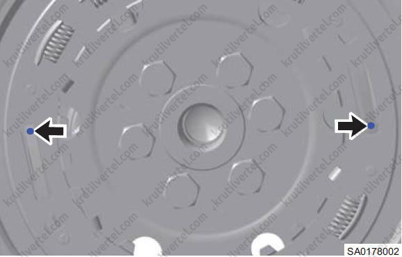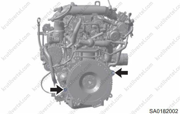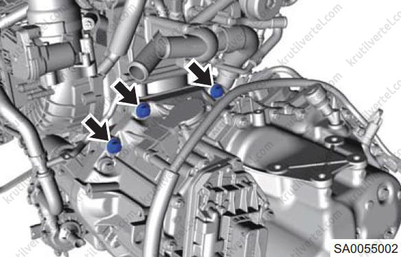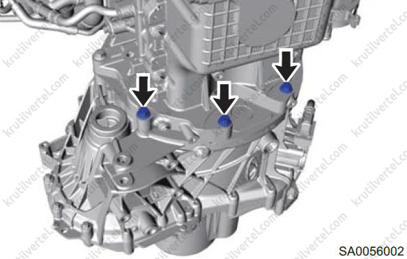 15. Відкрутіть три болти (стрілки) між верхньою частиною коробки передач і двигуном.