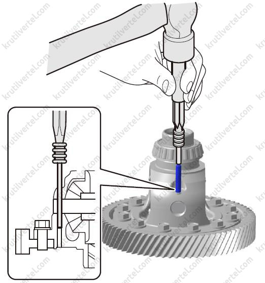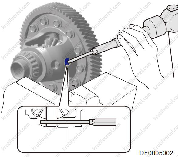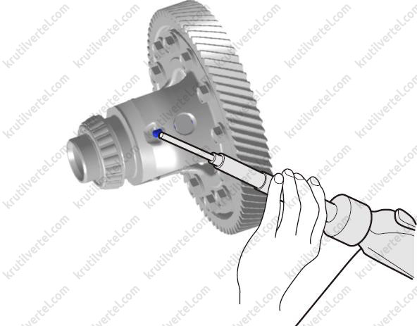 - Використовуючи борідок діаметром 5 мм та молоток, зніміть настановний штифт з диференціала.