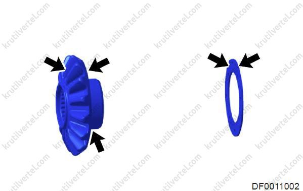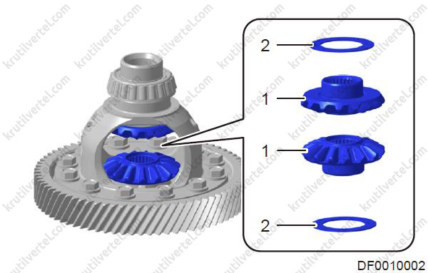 - Зніміть дві бічні шестірні та дві шайби з коробки диференціала.
