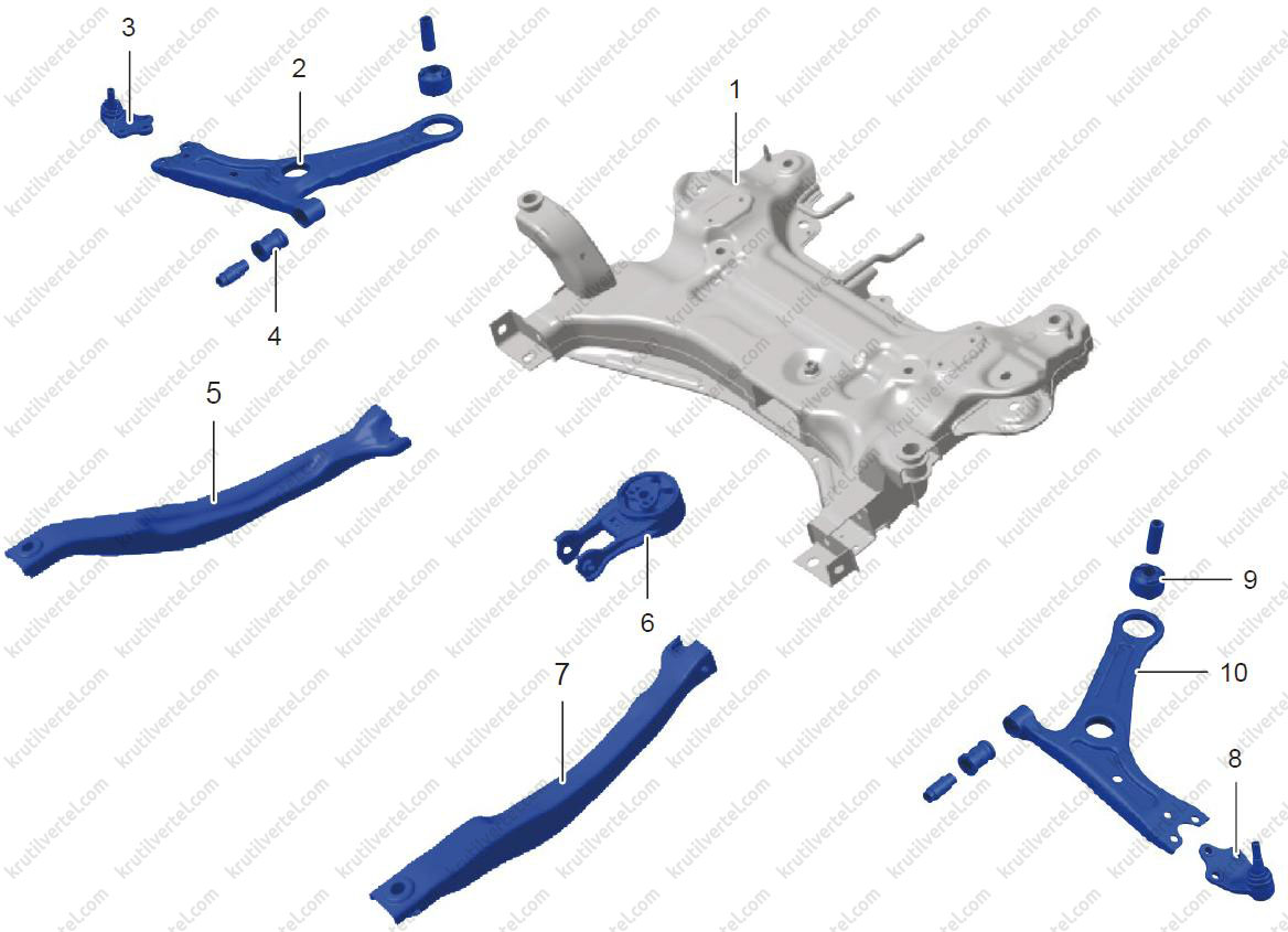 - Задній сайлентблок лівого переднього важеля управління в зборі .10. Передній лівий важіль керування у зборі.