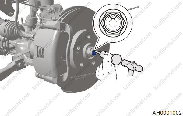 - Використовуючи кернер та молоток, послабте закинуту в паз частину буртика гайки.