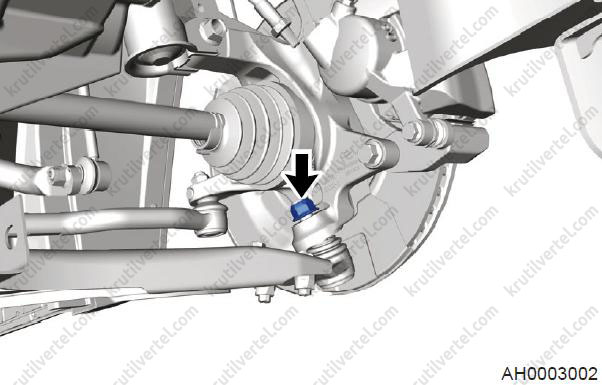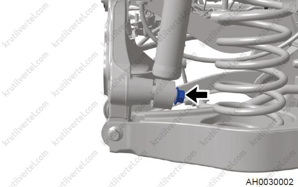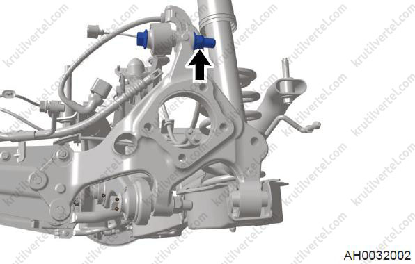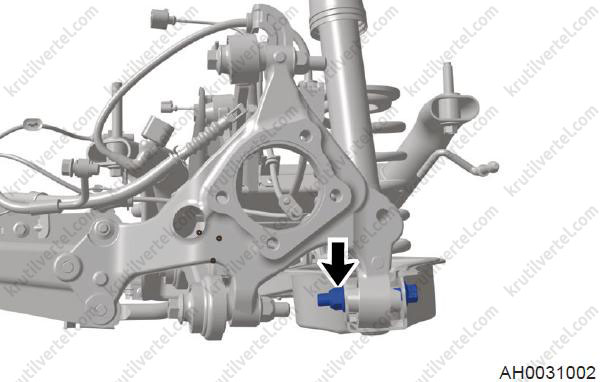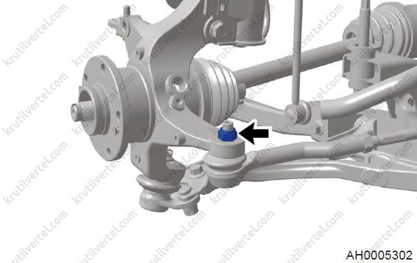 - Кульовий палець переднього лівого важеля керування у зборі.