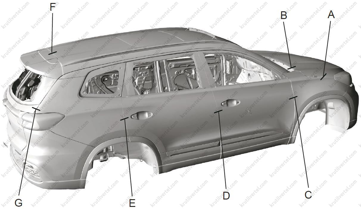 | G | 4,0±1,0 мм | Зазор між заднім крилом та дверима багажного відділення |