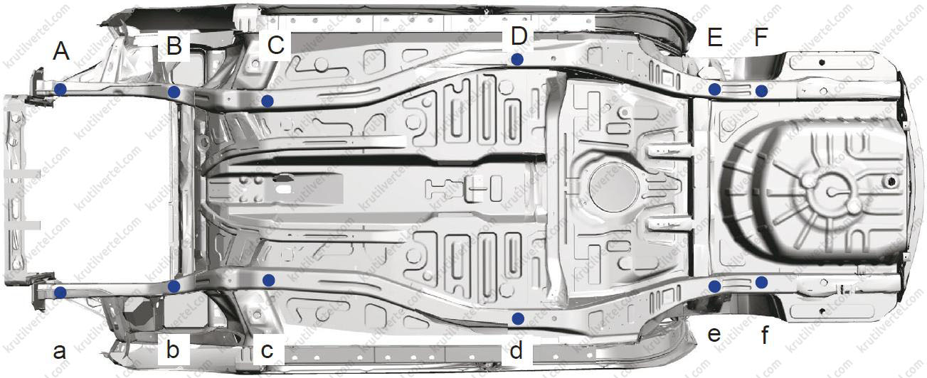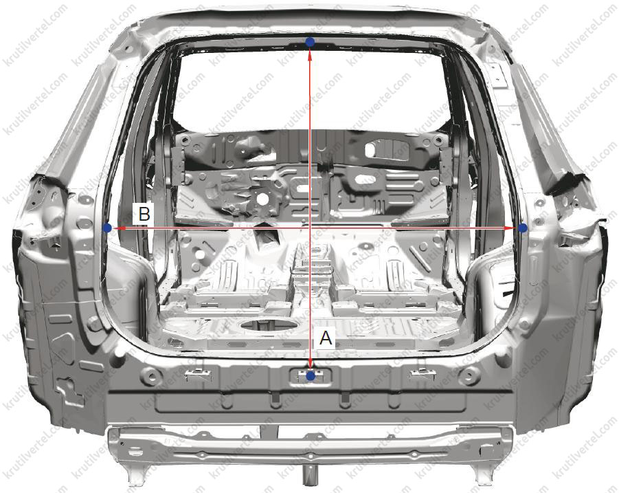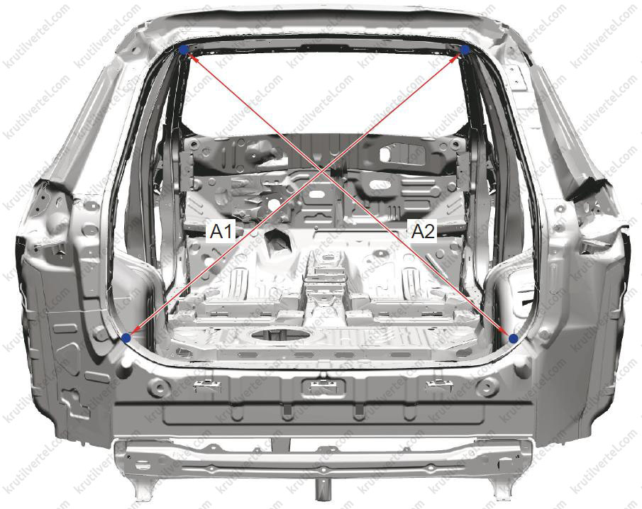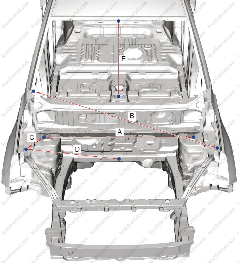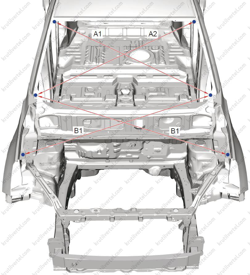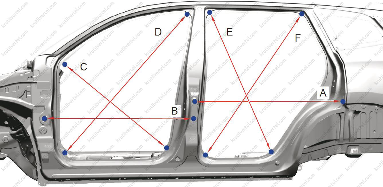 - Усі виміри повинні проводитися безпосередньо по металу деталей кузова. При необхідності зніміть елементи зовнішнього обладнання кузова та елементи оздоблення салону.