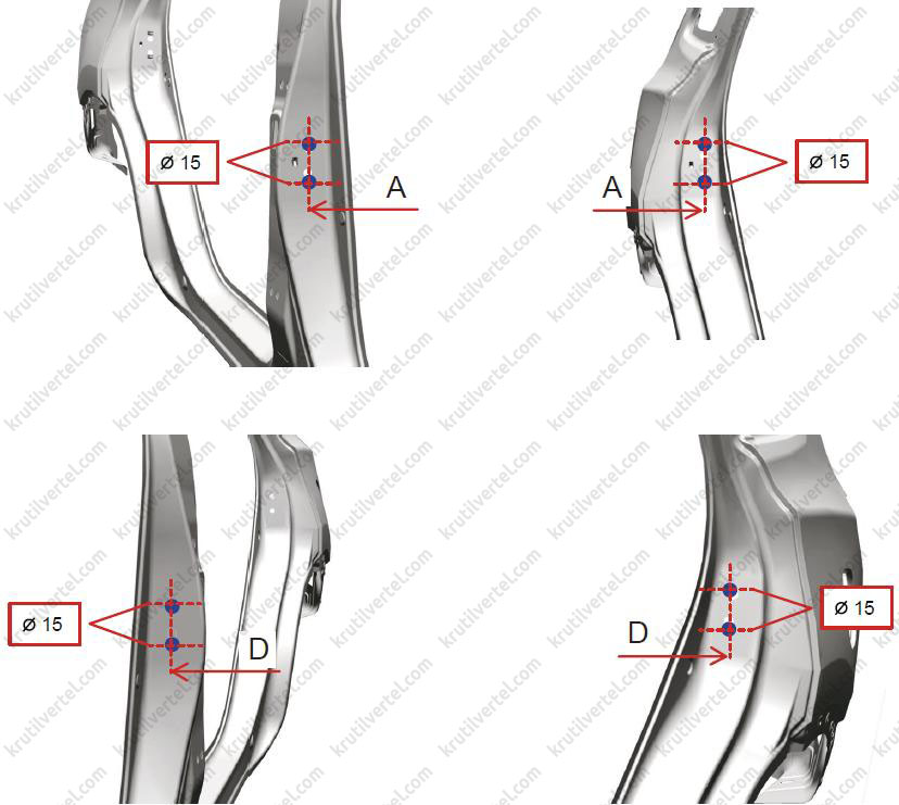 - Під час правки платформи кузова стежте за верхньою частиною силового каркаса кузова, звертаючи увагу на занадто високу напругу та переміщення.