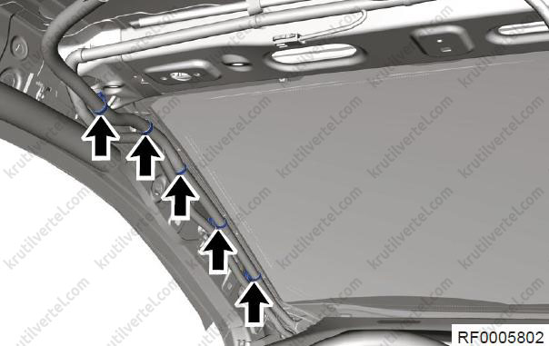 - Намагайтеся не подряпати оббивку та панелі облицювання під час зняття/встановлення компонентів зсувного люка у даху.